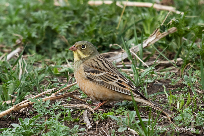 Ejemplar adulto de escribano hortelano fotografiado en vuelo de paso postnupcial en la Sierra de Baza (Granada).