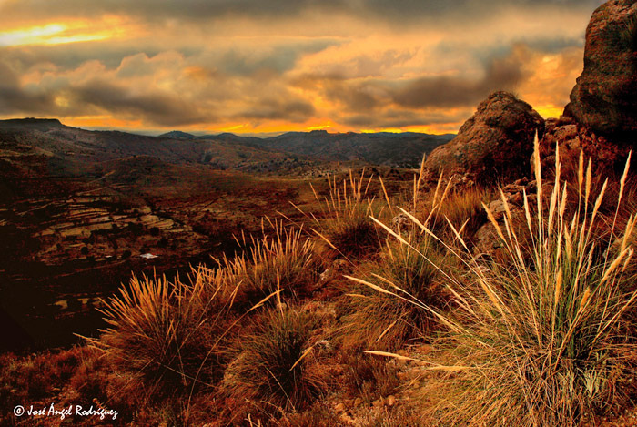 Espartal en el Parque Natural Sierra de Baza, con el valle del Río de Gor al fondo.