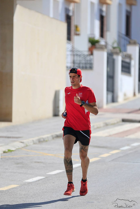 Según relata el corredor en su página personal de Facebook, su experiencia comenzó a las 6 de la madrugada, cuando aún estaba cerrada la noche, en las proximidades de la aldea de Rejano, en una rambla, con muchísimas ganas de empezar a correr. A los 2,5 km una piara de jabalíes cuenta que le hizo frenar, esperó a que se alejaran para poder proseguir, sin miedo hacia los Rodeos, allí tenía previsto su primer avituallamiento, donde también dejó la manga larga y cogió la mochila, continuando hasta Benacebada por la orilla del arroyo Balax, cruzando hasta la aldea de Bailén, donde ascendió por una arista dirección a Beneroso mientras recibía los primero rayos de sol, lo que el corredor describe como “una sensación espectacular”.