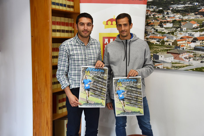 Juan Carlos Moya y el concejal Antonio Vallejo presentan el cartel promocionador del reto deportivo en el Ayuntamiento de Baza.