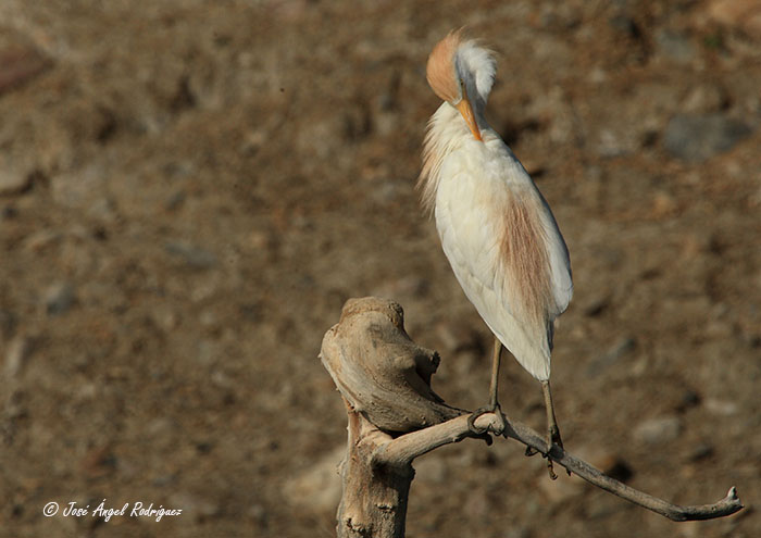 Garcilla bueyera (Bubulcus ibis) fotografiadas en la Hoya de Baza con el plumaje estival, aseándose el plumaje.