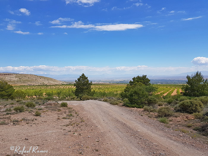 Conforme vamos subiendo y con vistas al levante se va descubriendo la Hoya de Baza y sus comarcas, y al abrigo del poniente hoy silencioso, el camino andado nos acerca en la mirada y el deseo a sus cumbres con los Prados del Rey coronando la Sierra majestuosa por encima de los 2.000 metros sobre el nivel del mar.