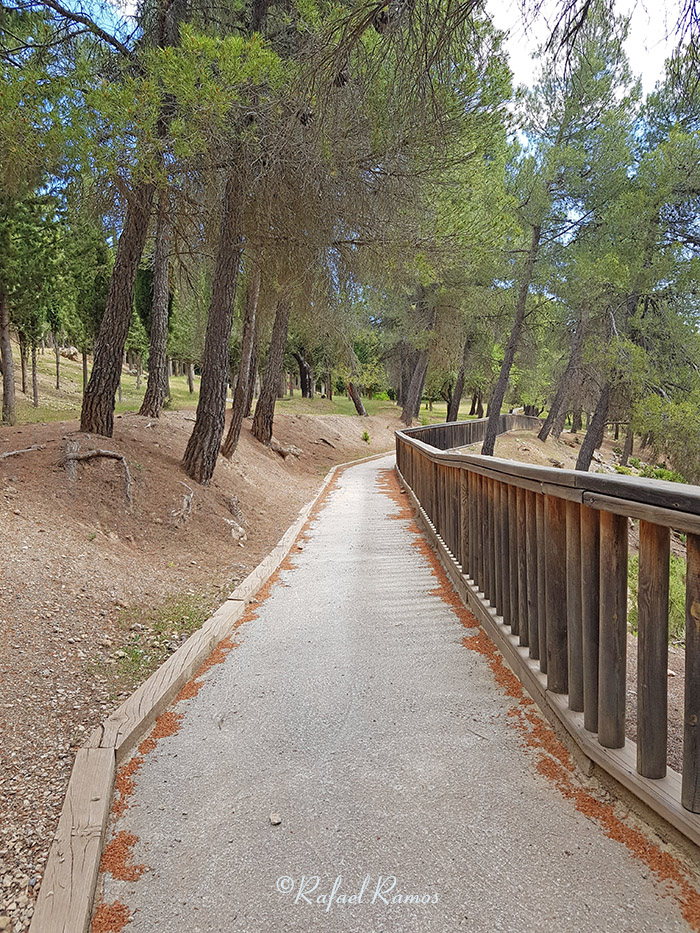 Decido volver pasando por el Área Recreativa de Narváez, cuyo camino me lo indica este camino adaptado al lugar que transcurre entre una valla de madera y un paisaje muy agradable, hasta llegar al centro de visitantes que ese día permanecía cerrado al público, con lo que la visita habrá que aplazar hasta otro día.