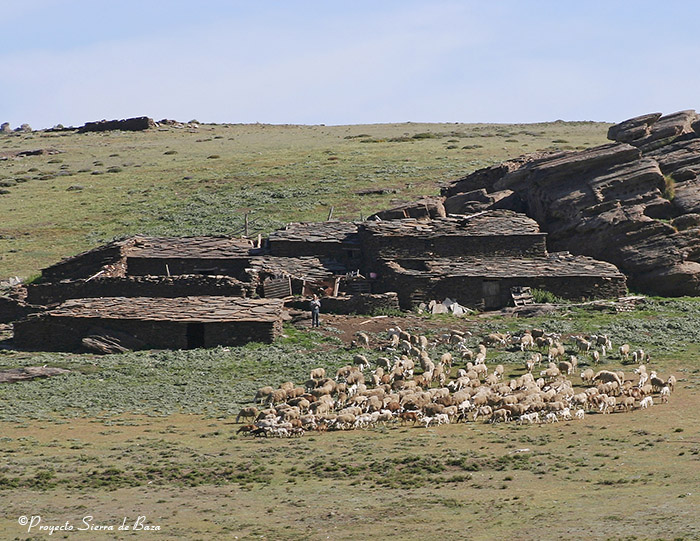 Ovejas siendo de sus corrales en la Sierra de Baza.