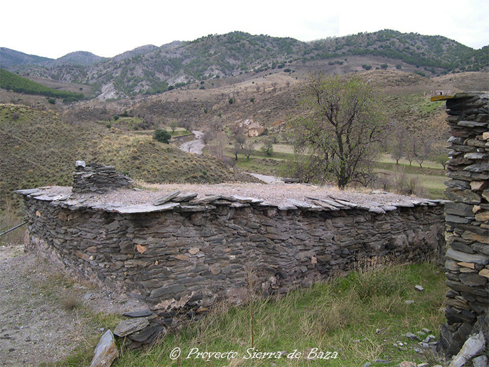 A la altura de la aldea de Los Corrales hicimos una segunda parada para conocer las típicas construcciones de esta aldea y también para conocer las peculiaridades geológicas que en esta zona se presentan, donde sobre el terreno nuestro compañero José Ángel Rodríguez, nos informó de la existencia en este paraje de la llamada Ventana Tectónica de Gor, una curiosidad geológica que se traduce en un afloramiento en una zona del Complejo Alpujárride, el que se caracteriza por la presencia de rocas carbonatadas de origen sedimentario, fundamentalmente calizas y dolomías, que se asientan sobre un tramo inferior de esquistos y filitas, de modo que aquí afloran a la superficie materiales propios de Complejo Nevado-Filábride, el que se caracteriza por presentar una litología compuesta por esquistos, mármoles, cuarcitas y algunas rocas duras, de modo que aquí podemos encontrarnos con un paisaje y materiales propios de zonas como la Cañada del Gitana, a cuyo paisaje nos recordaba la zona de Los Corrales, pese a la distancia, por este curioso fenómeno de afloramiento geológico de los esquistos.