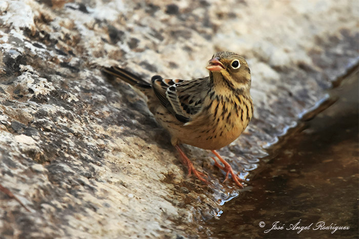 Escribano hortelano (Emberiza hortulana) fotografiada en el entorno del Hide de la Cañada del Espartal (Parque Natural Sierra de Baza).