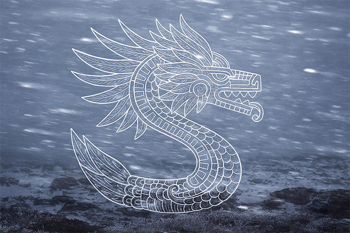 En las culturas mesoamericanas, Quetzalcóatl —la serpiente emplumada— simbolizaba la unión entre cielo y tierra y era considerada como portadora de creatividad, vida y conocimiento. Sus representaciones muestran cuerpos serpentinos, espirales, plumas afiladas y movimientos ondulantes que evocan transformación y renacimiento. Al observar este imaginario —desde ilustraciones tradicionales hasta versiones contemporáneas más dinámicas— aparece siempre la misma esencia: curvas y ondulaciones, texturas, plumas, espirales. Un lenguaje visual que habla de fuerza y misterio.