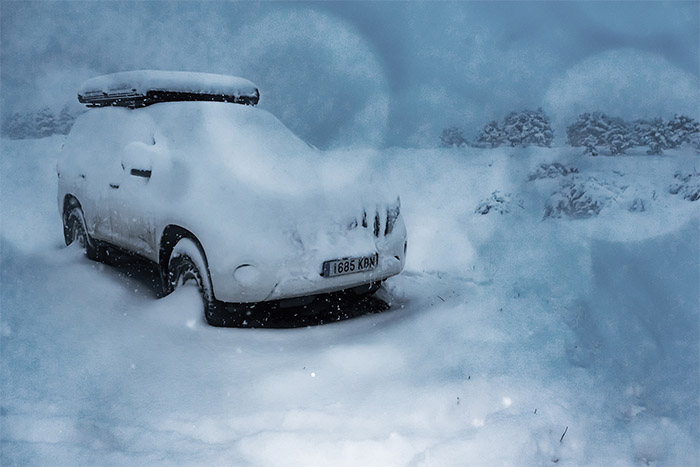 En la imagen premiada, ese simbolismo parece cobrar vida. El tronco retorcido replica la curva de la serpiente emplumada; las ramas endurecidas por el viento emergen como plumas; y las acículas recuerdan a un plumaje antiguo levantado por la tormenta. Las texturas rugosas se mezclan con los brochazos blancos de la ventisca, y los copos, arrastrados por ráfagas violentas, pintan la escena con un trazo propio de un ritual.