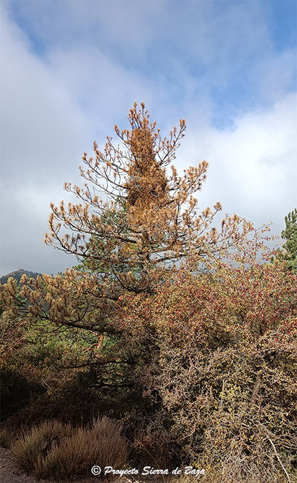Pinos afectados por el muérdago en la zona del Calar de Santa Bárbara.