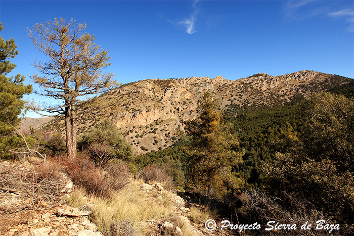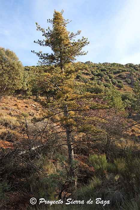 La zona de más afectación por muérdago en la Sierra de Baza se localiza en el Barranco de la Fonfría, donde casi el noventa por ciento de sus pies presentan daños por el muérdago.