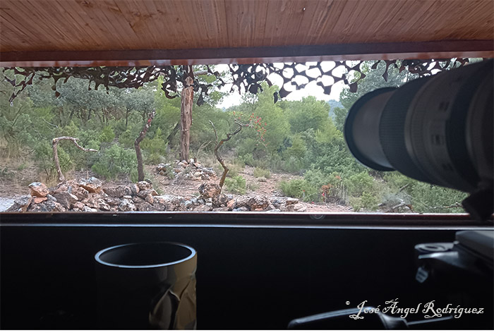 Un observatorio de fauna para dos plazas, muy cómodo y dotado de un cristal espía con un amplio campo de visión, permite disfrutar de la observación y fotografía de la fauna silvestre en la Sierra de Baza.