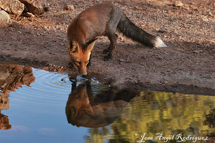 Zorro (Vulpes vulpes), otro de los visitantes asiduos a la charca, especialmente en la época estival.