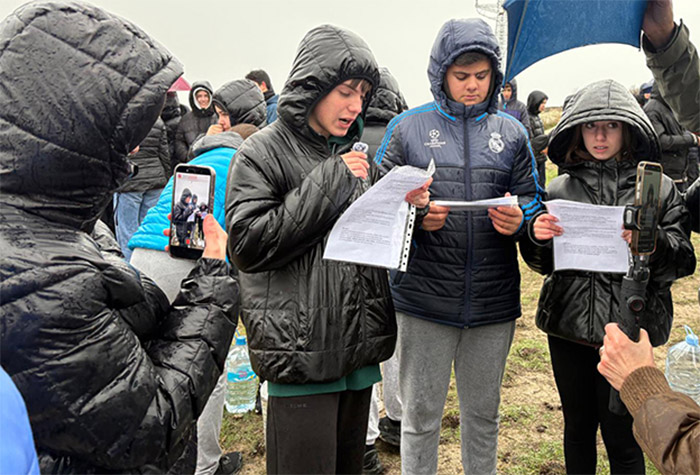 A pesar de las inclemencias meteorológicas, un centenar de estudiantes de 1º y 3º de ESO y de Ciclos Formativos de FP del IES Pedro Jiménez Montoya, en representación de todos los centros educativos de la ciudad de Baza que han mostrado su apoyo a esta convocatoria, acompañados de algunos profesores, se desplazaron en la mañana del lunes 2 de febrero hasta las inmediaciones del Humedal del Baíco, donde realizaron un acto de reivindicación en defensa de este espacio natural.