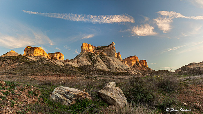 En el entorno del río Fardes se encuentran estas espectaculares paredes rocosas de calizas lacustres del Plioceno, que resaltan entre las tierras más blandas y erosionables de las proximidades. En estos rincones, siempre se disfruta de unos atardeceres únicos que revelan un paisaje primitivo, solitario, bien conservado y por tanto rico en flora y fauna. Un territorio que nos evoca lo que debió ser esa zona cuando se instalaron en este rincón los pobladores de la edad del bronce.