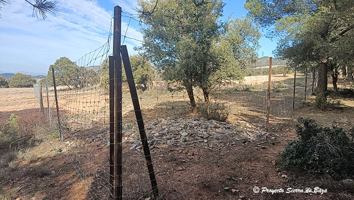 Vallado acondicionado para la protección de un cultivo agrícola en la vega de Bailén.