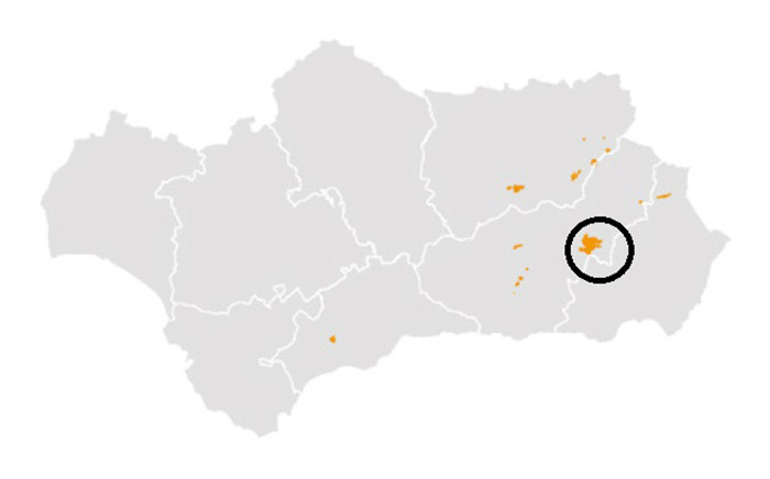 Mapa de la distribución de este hábitat a nivel comunitario andaluz