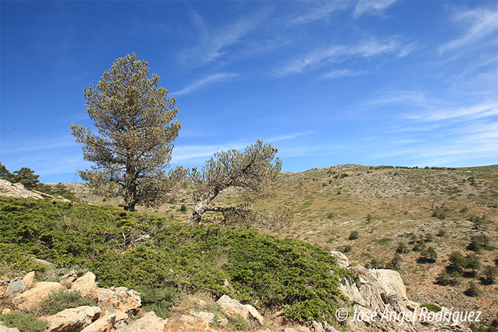Vegetación de enebros y sabinas rastreras en el pinar oromediterráneo del Parque Natural Sierra de Baza.