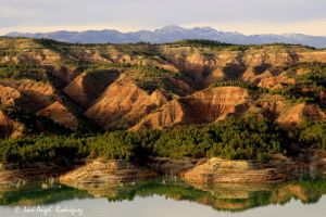 Panorámica del Cerro Jabalcón con la Ermita y Pantano del Negratín al fondo