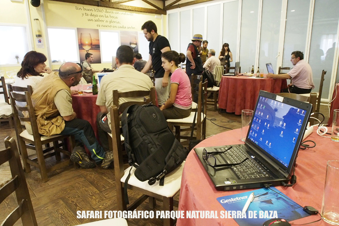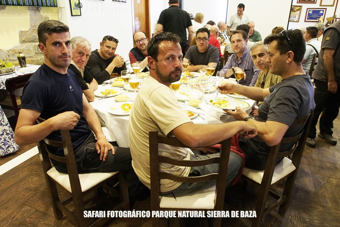 En torno a las 15:15 tuvo lugar la comida de los participantes con la organización y jurado, la que este año se celebró en el Restaurante Las Conchas, de Baza, en un ambiente ya más relajado que se aprovechó para comentar la jornada de cacería fotográfica, cambiar impresiones, aprovechar para el reencuentro con los amigos y conocidos de anteriores ediciones o, para los incorporados por primera vez, conocer a esta gran familia que es la de los fotógrafos de Safari Fotográfico Parque Natural Sierra de Baza.