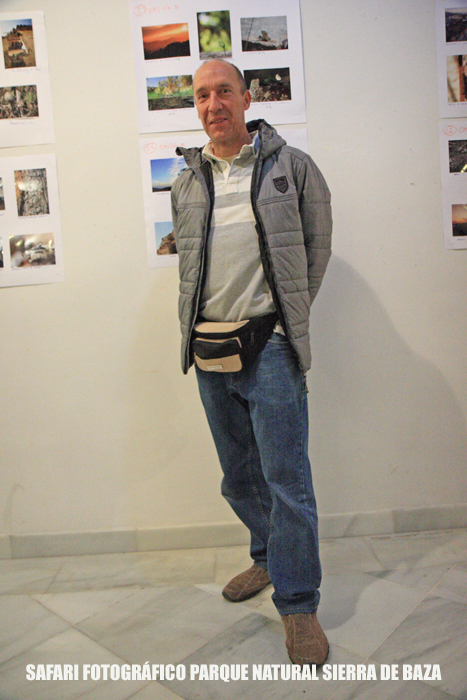 Jorge Sierra en la sala de exposiciones del XX Safari Fotográfico Parque Natural Sierra de Baza, delante los trabajos que tenía que valorar.